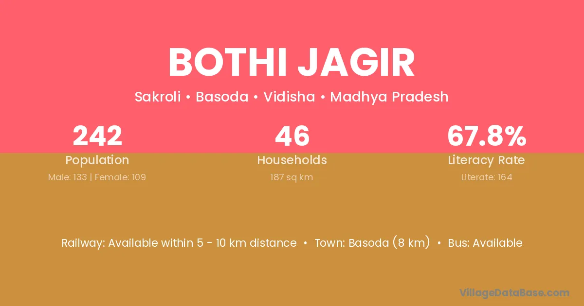 Basoda (8 km) is the nearest town to Bothi Jagir village for major economic activities and is located approximately 8 km away.