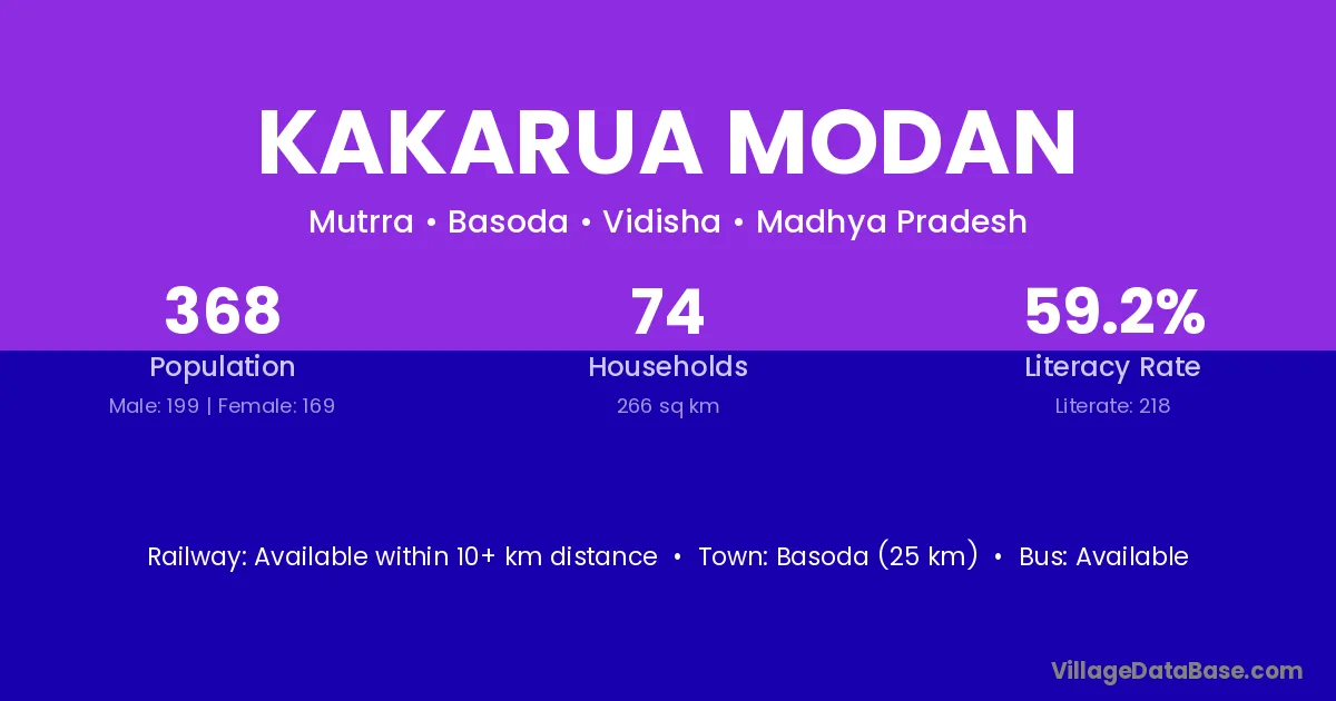 Basoda (25 km) is the nearest town to Kakarua Modan village for major economic activities and is located approximately 25 km away.