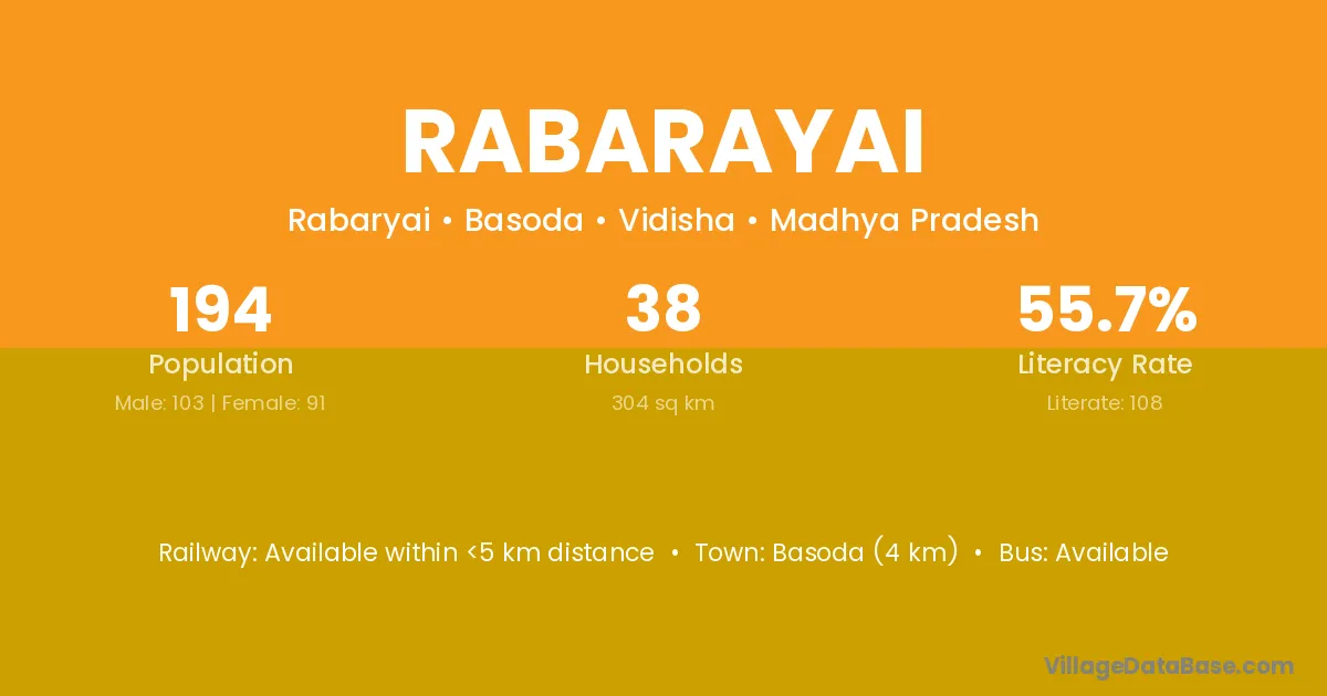 Basoda (4 km) is the nearest town to Rabarayai village for major economic activities and is located approximately 4 km away.