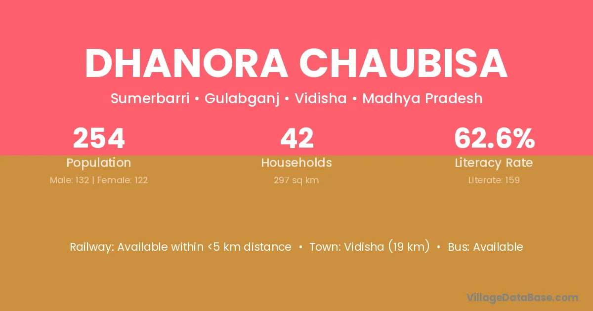 Vidisha (19 km) is the nearest town to Dhanora Chaubisa village for major economic activities and is located approximately 19 km away.