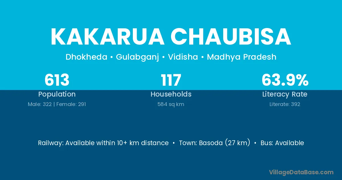 Basoda (27 km) is the nearest town to Kakarua Chaubisa village for major economic activities and is located approximately 27 km away.