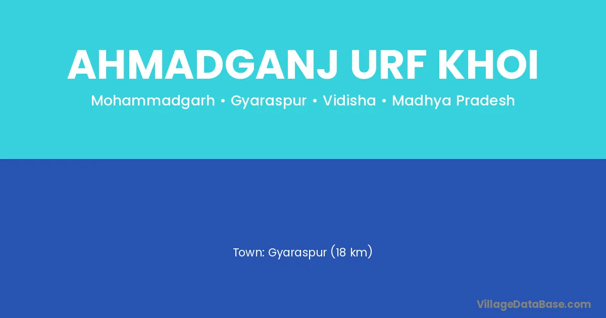 Gyaraspur (18 km) is the nearest town to Ahmadganj Urf Khoi village for major economic activities and is located approximately 18 km away.