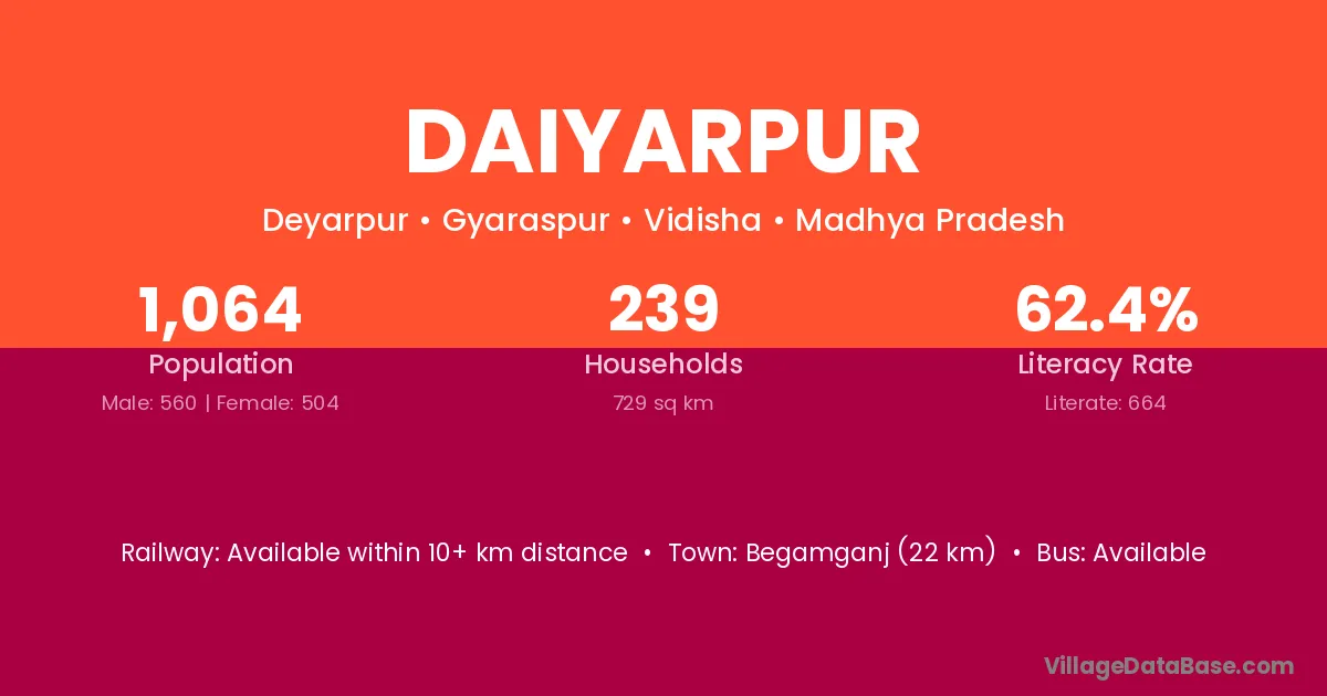 Begamganj (22 km) is the nearest town to Daiyarpur village for major economic activities and is located approximately 22 km away.
