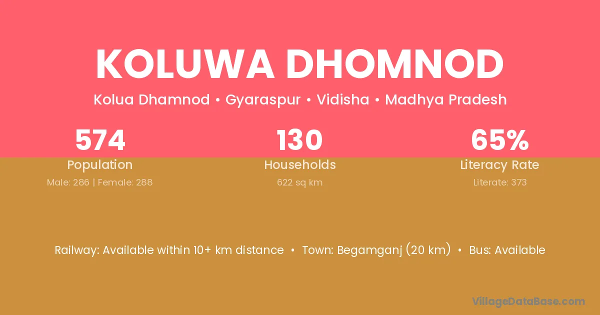 Begamganj (20 km) is the nearest town to Koluwa Dhomnod village for major economic activities and is located approximately 20 km away.