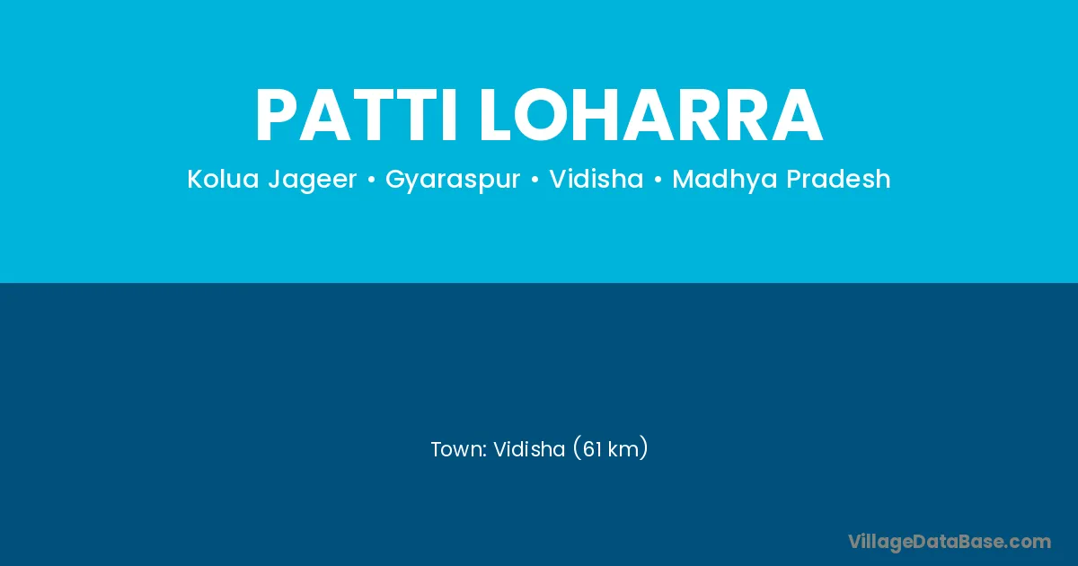 Vidisha (61 km) is the nearest town to Patti Loharra village for major economic activities and is located approximately 61 km away.