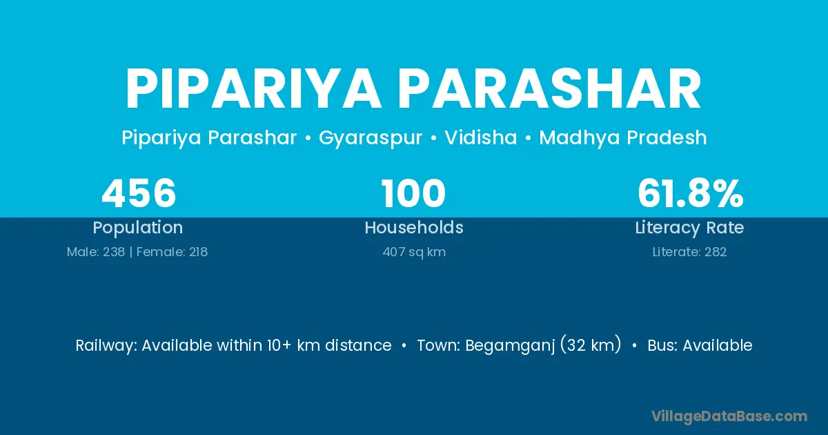 Pipariya Parashar village has a total population of 456 people, of which 238 are males and 218 are females.