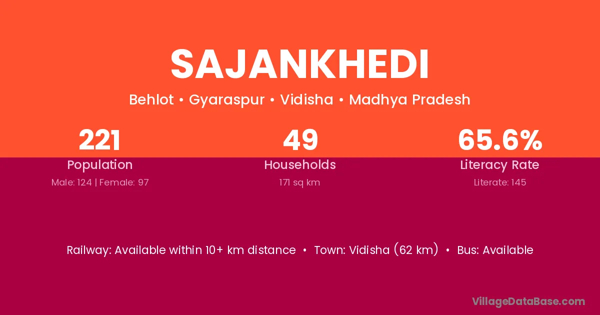 Sajankhedi village has a total population of 221 people, of which 124 are males and 97 are females.