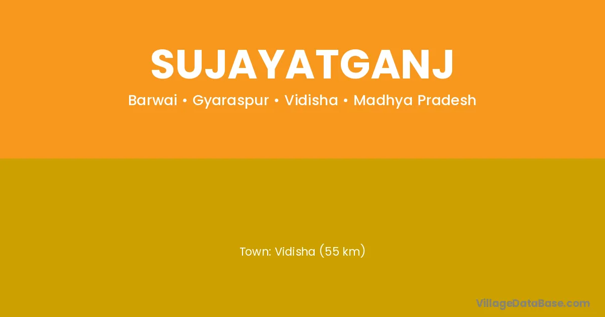 Vidisha (55 km) is the nearest town to Sujayatganj village for major economic activities and is located approximately 55 km away.