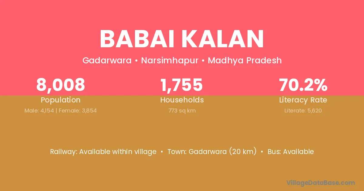 Kurwai (15 km) is the nearest town to Babai Kalan village for major economic activities and is located approximately 15 km away.