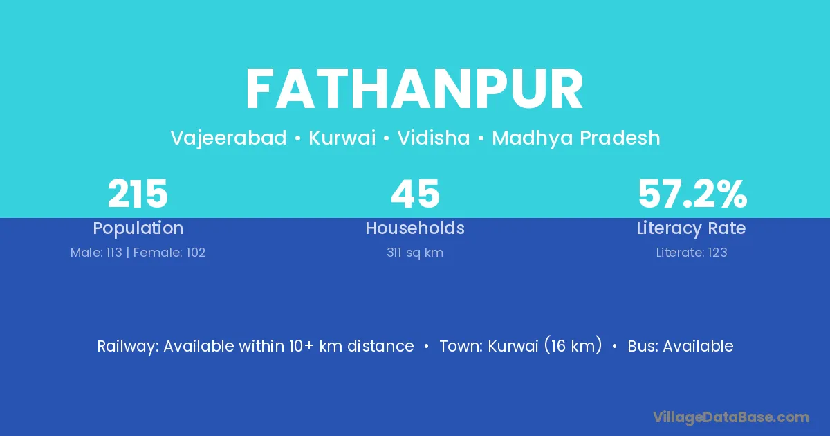 Kurwai (16 km) is the nearest town to Fathanpur village for major economic activities and is located approximately 16 km away.