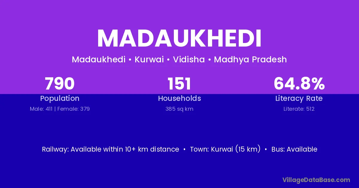 Kurwai (15 km) is the nearest town to Madaukhedi village for major economic activities and is located approximately 15 km away.
