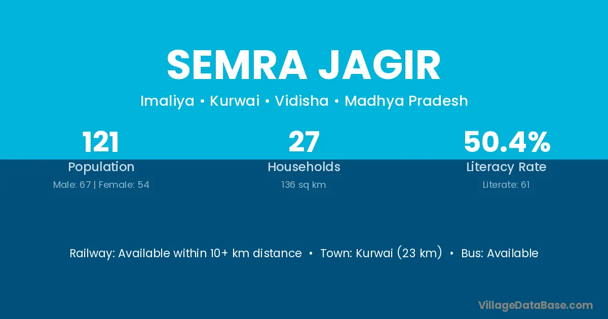 Kurwai (23 km) is the nearest town to Semra Jagir village for major economic activities and is located approximately 23 km away.