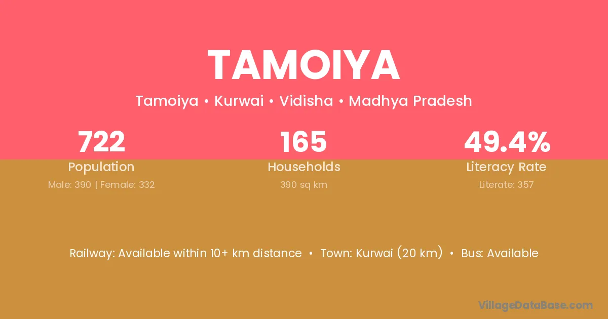 Tamoiya village is located in the Kurwai Tehsil of the Vidisha district in Madhya Pradesh .
