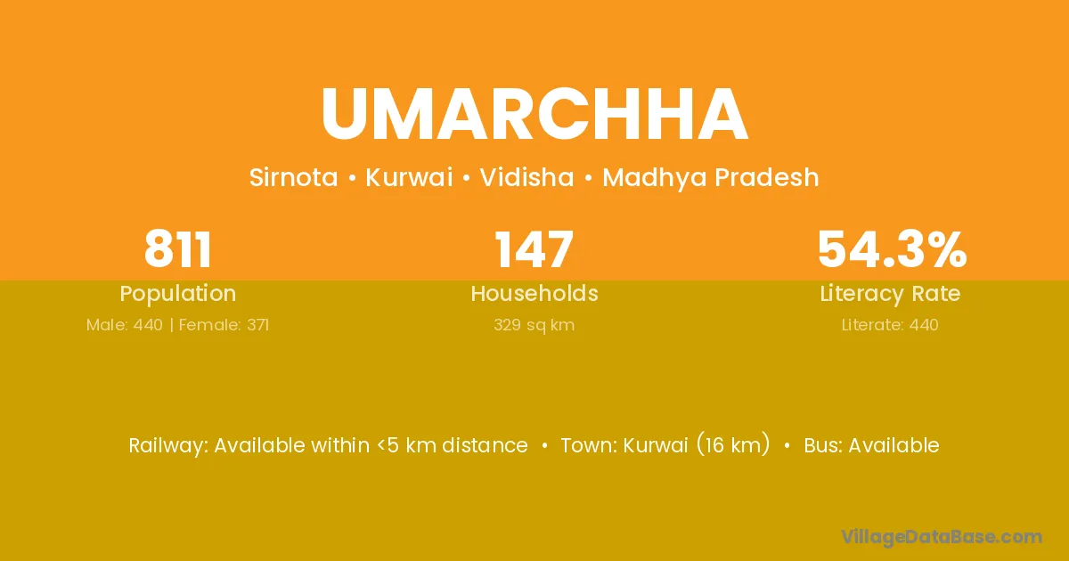 Kurwai (16 km) is the nearest town to Umarchha village for major economic activities and is located approximately 16 km away.