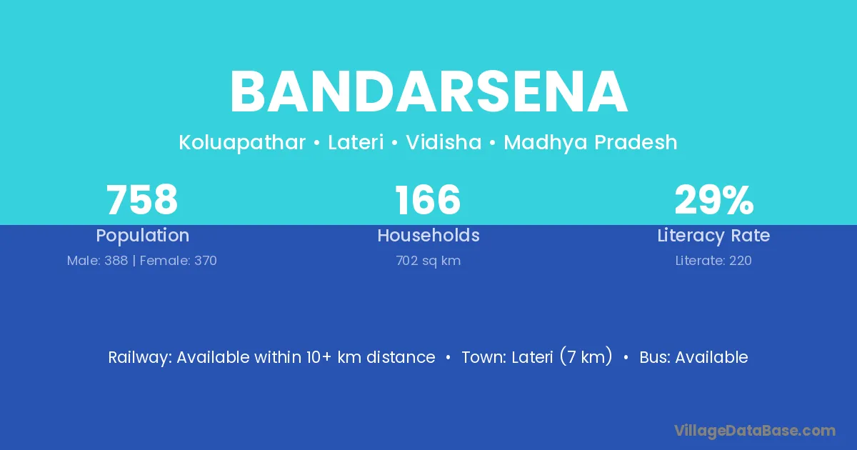 Lateri (7 km) is the nearest town to Bandarsena village for major economic activities and is located approximately 7 km away.