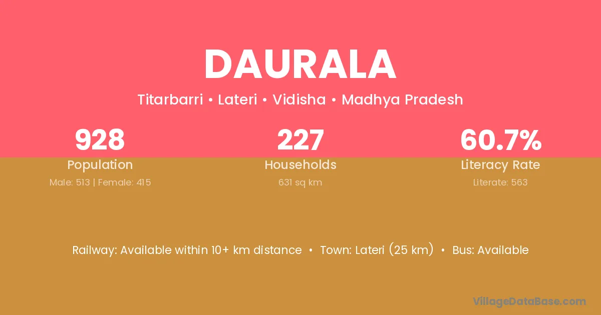 Lateri (25 km) is the nearest town to Daurala village for major economic activities and is located approximately 25 km away.