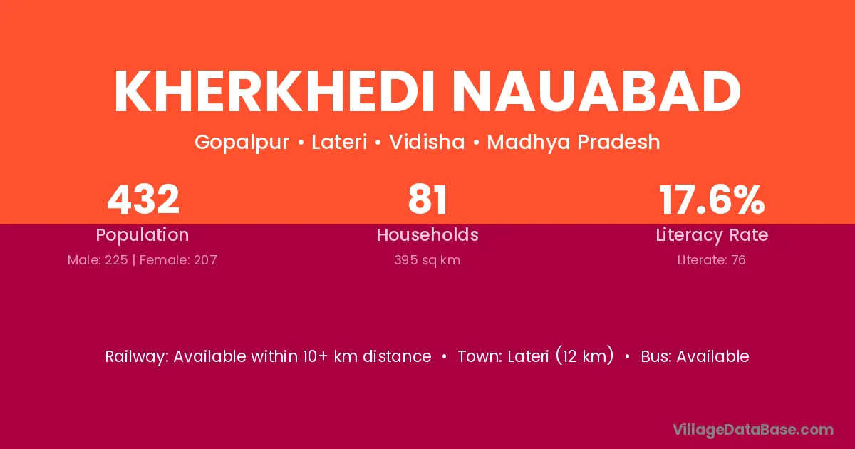 Kherkhedi Nauabad village has a total population of 432 people, of which 225 are males and 207 are females.