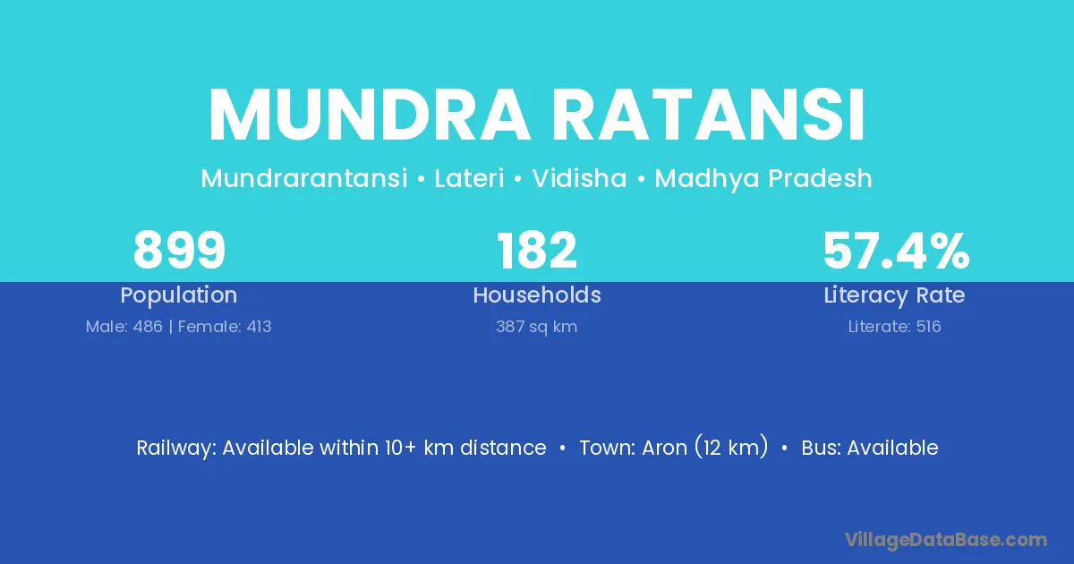 Aron (12 km) is the nearest town to Mundra Ratansi village for major economic activities and is located approximately 12 km away.