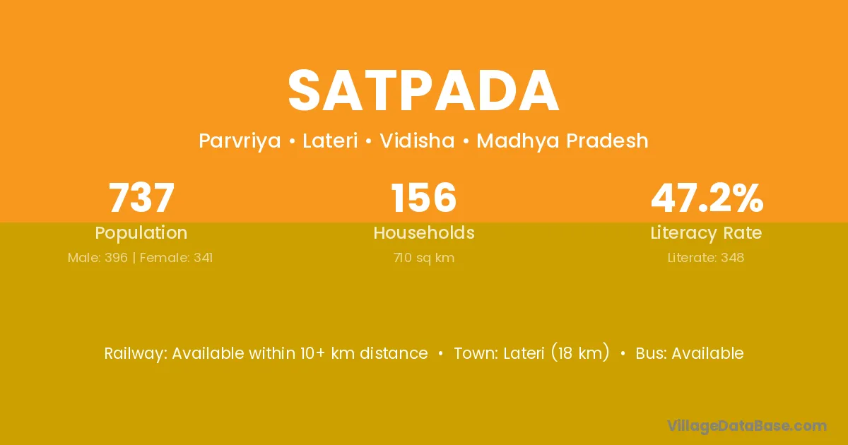Lateri (18 km) is the nearest town to Satpada village for major economic activities and is located approximately 18 km away.