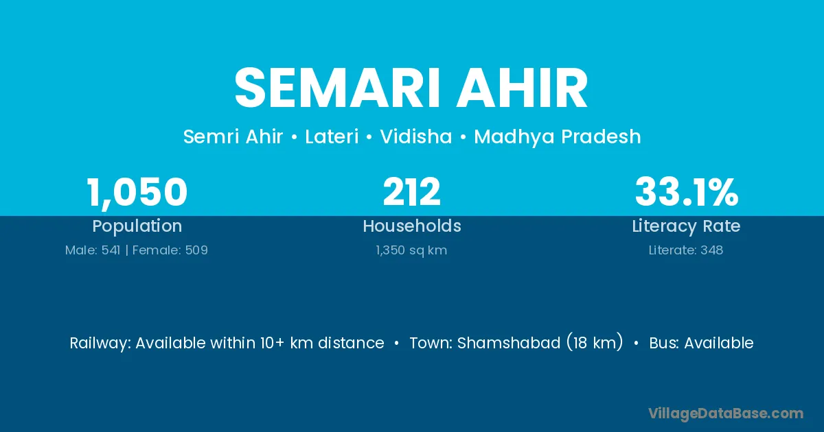 Semari Ahir village has a total population of 1,050 people, of which 541 are males and 509 are females.