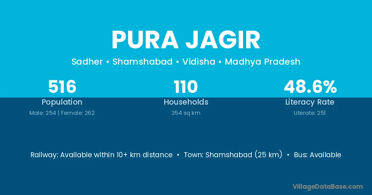 Pura Jagir village is located in the Shamshabad Tehsil of the Vidisha district in Madhya Pradesh .
