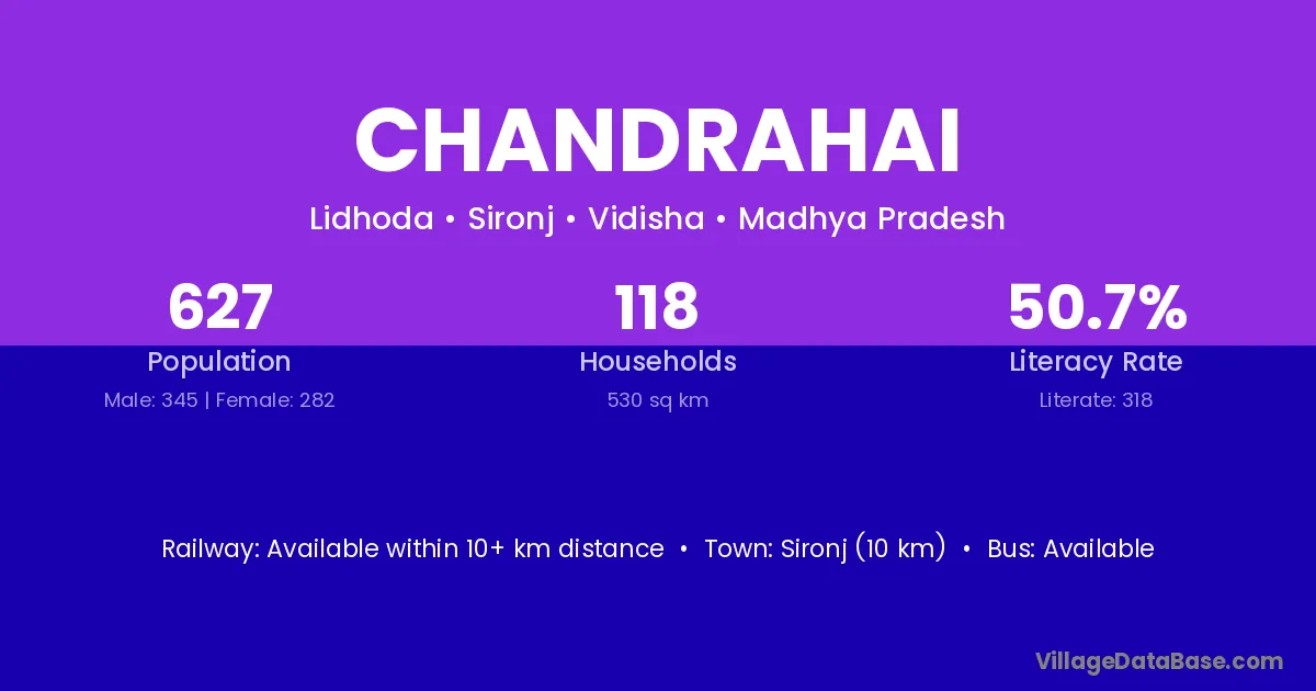 Sironj (10 km) is the nearest town to Chandrahai village for major economic activities and is located approximately 10 km away.