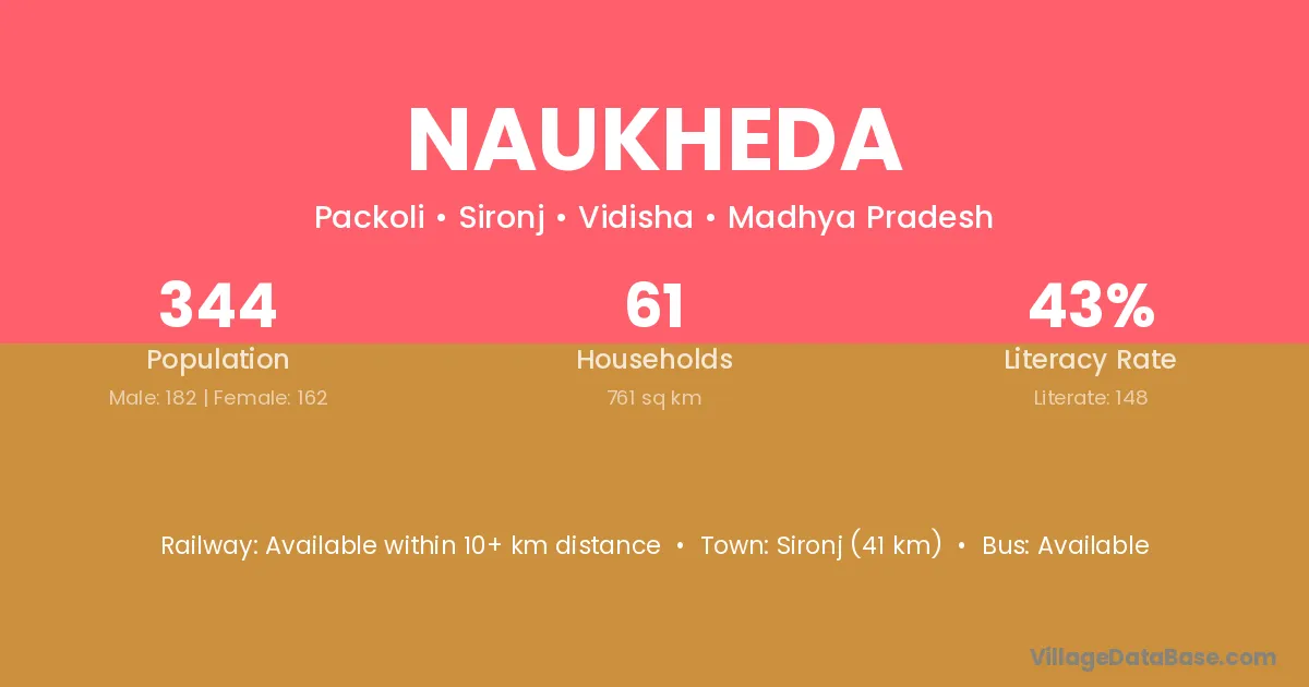Sironj (41 km) is the nearest town to Naukheda village for major economic activities and is located approximately 41 km away.