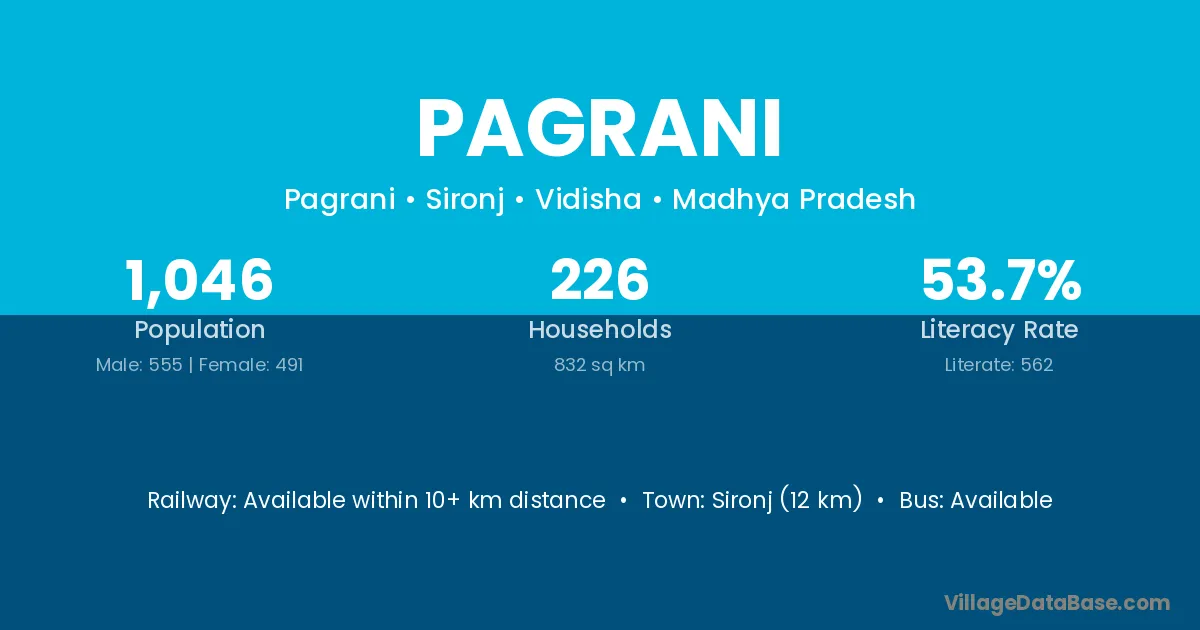 Sironj (12 km) is the nearest town to Pagrani village for major economic activities and is located approximately 12 km away.