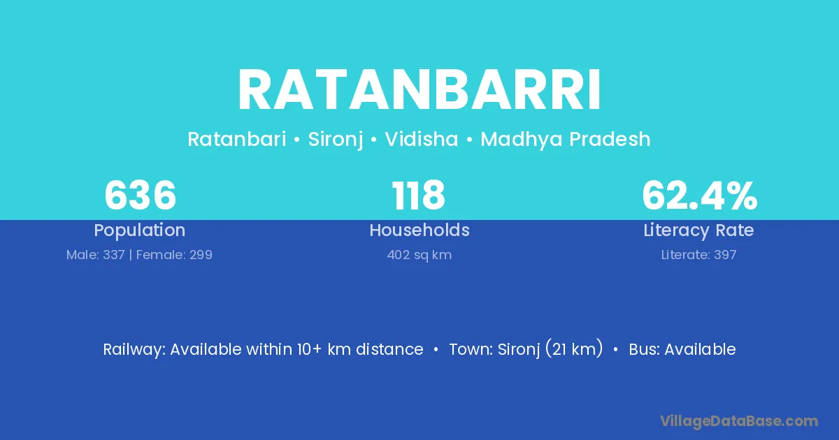 Sironj (21 km) is the nearest town to Ratanbarri village for major economic activities and is located approximately 21 km away.