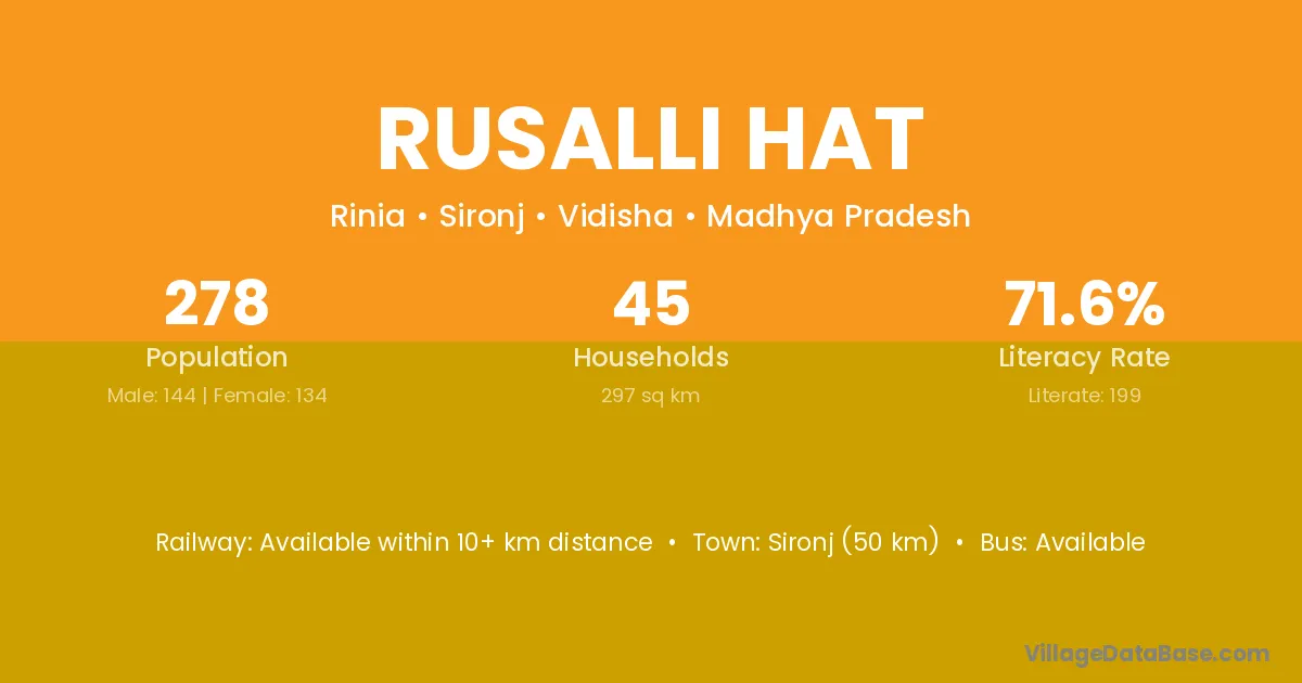 Sironj (50 km) is the nearest town to Rusalli Hat village for major economic activities and is located approximately 50 km away.