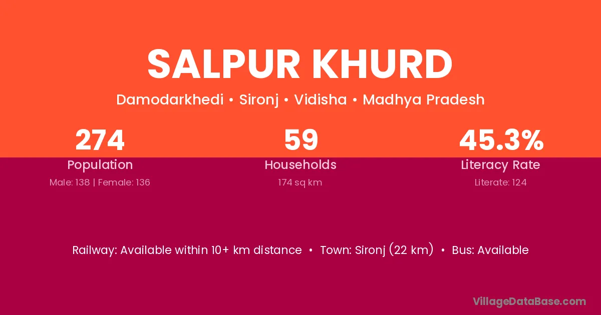 Sironj (22 km) is the nearest town to Salpur Khurd village for major economic activities and is located approximately 22 km away.