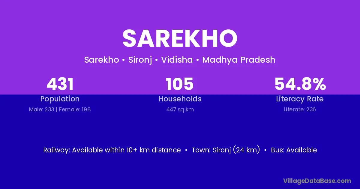 Sironj (24 km) is the nearest town to Sarekho village for major economic activities and is located approximately 24 km away.