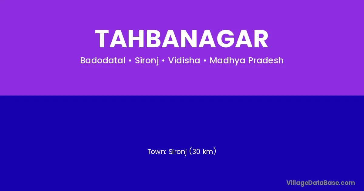 Sironj (30 km) is the nearest town to Tahbanagar village for major economic activities and is located approximately 30 km away.