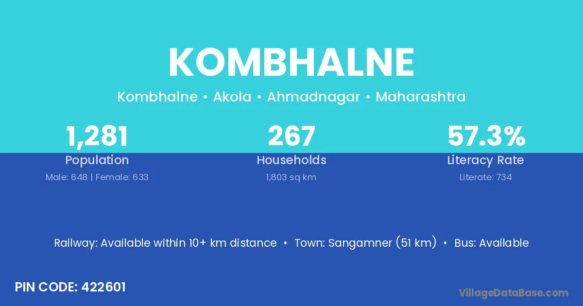Kombhalne village has a total population of 1,281 people, of which 648 are males and 633 are females.