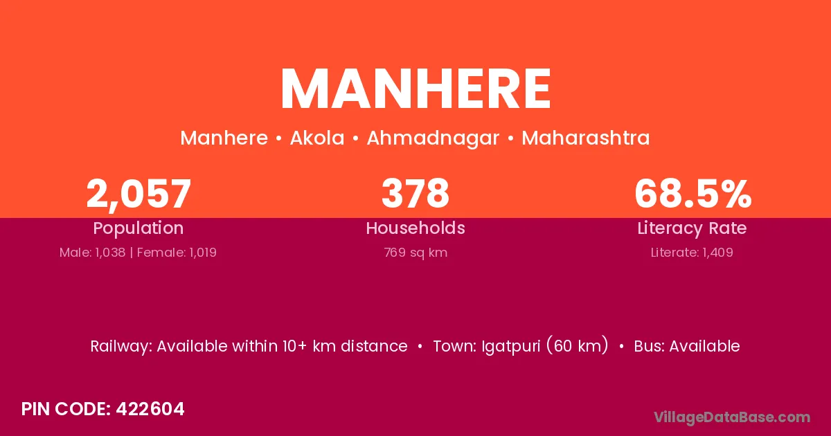 According to Census 2011 information, the village code of Manhere village is 422604.