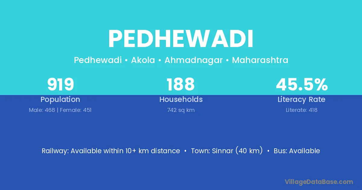 Pedhewadi village has a total population of 919 people, of which 468 are males and 451 are females.