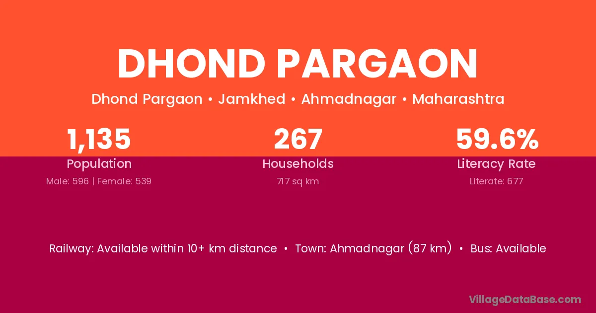Dhond Pargaon village has a total population of 1,135 people, of which 596 are males and 539 are females.