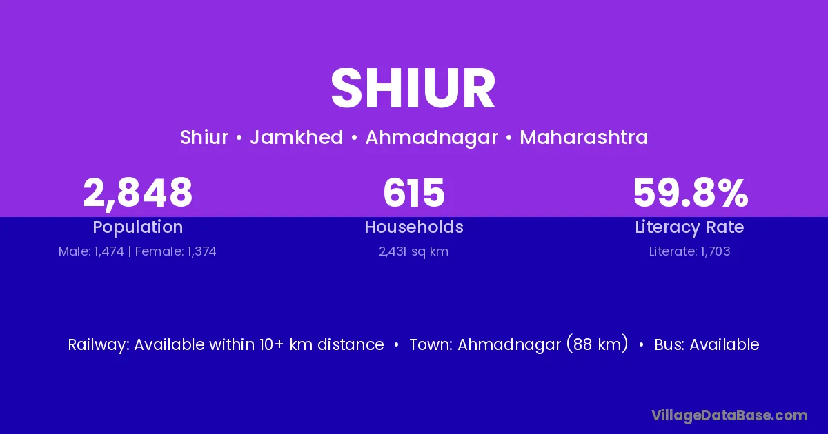 Ahmadnagar (88 km) is the nearest town to Shiur village for major economic activities and is located approximately 88 km away.