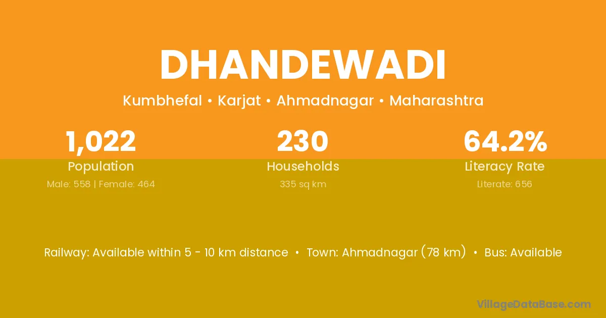 Dhandewadi village has a total population of 1,022 people, of which 558 are males and 464 are females.