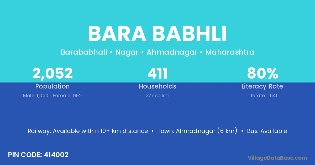 Ahmadnagar (6 km) is the nearest town to Bara Babhli village for major economic activities and is located approximately 6 km away.