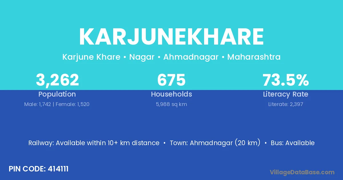 Ahmadnagar (20 km) is the nearest town to Karjunekhare village for major economic activities and is located approximately 20 km away.