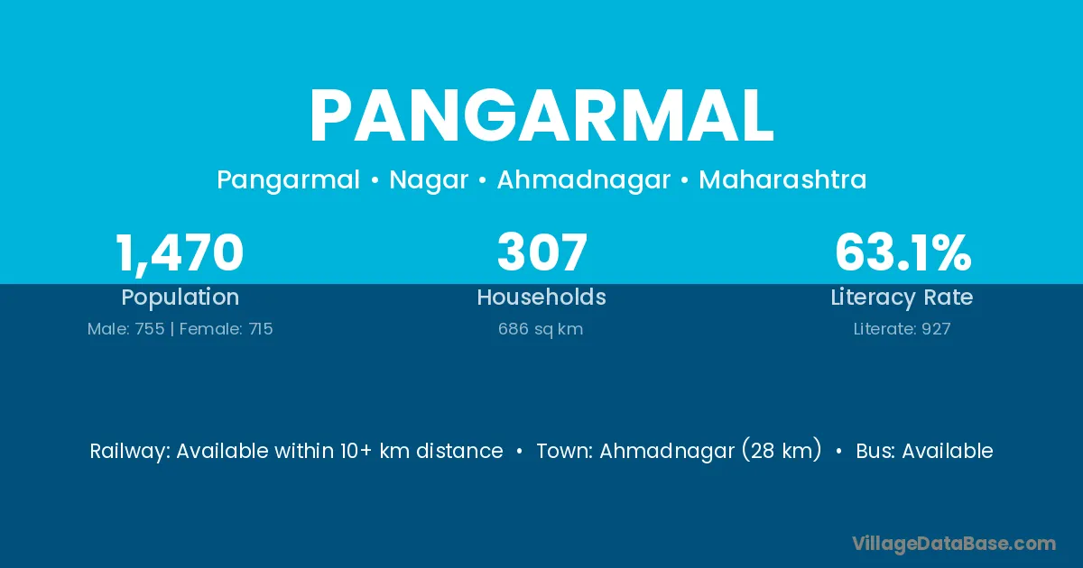 Ahmadnagar (28 km) is the nearest town to Pangarmal village for major economic activities and is located approximately 28 km away.