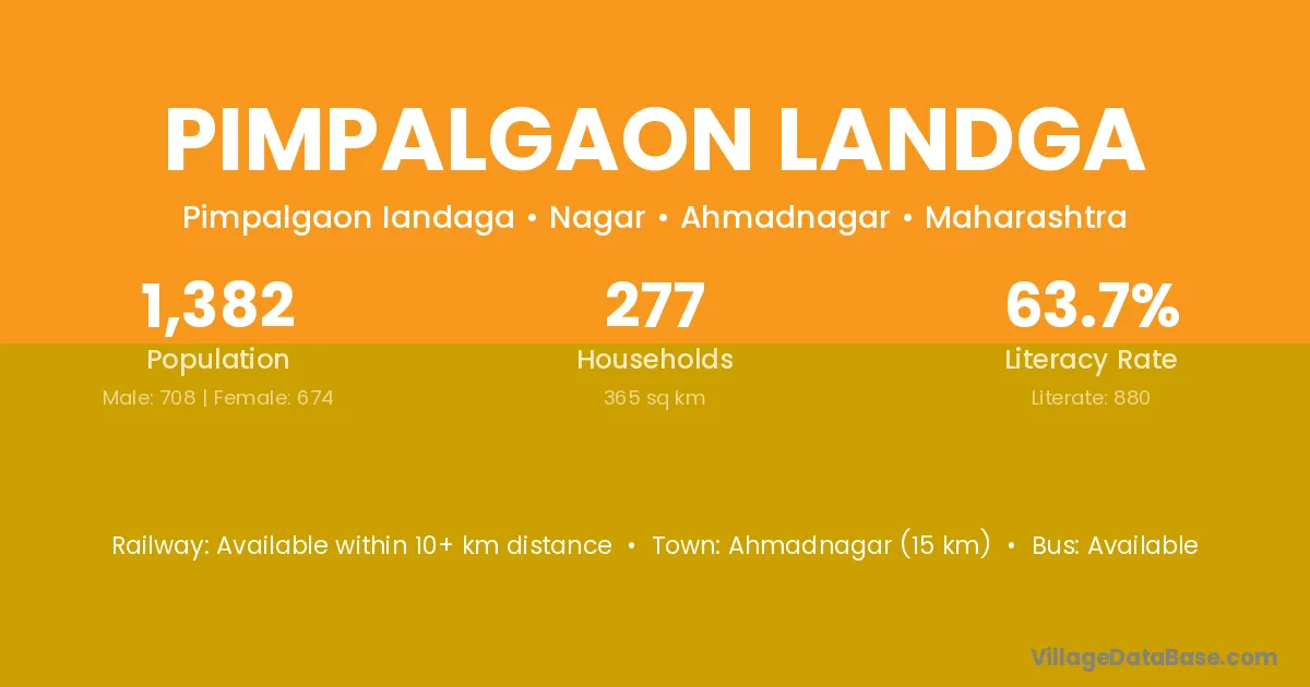 Ahmadnagar (15 km) is the nearest town to Pimpalgaon Landga village for major economic activities and is located approximately 15 km away.