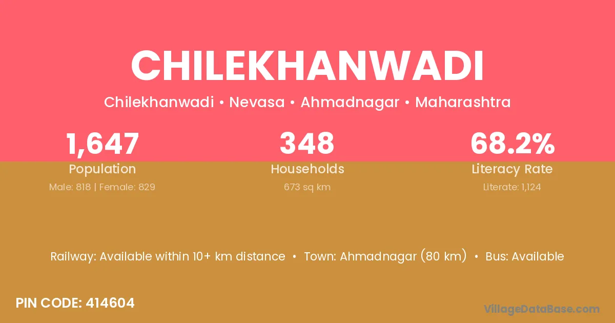 Ahmadnagar (80 km) is the nearest town to Chilekhanwadi village for major economic activities and is located approximately 80 km away.