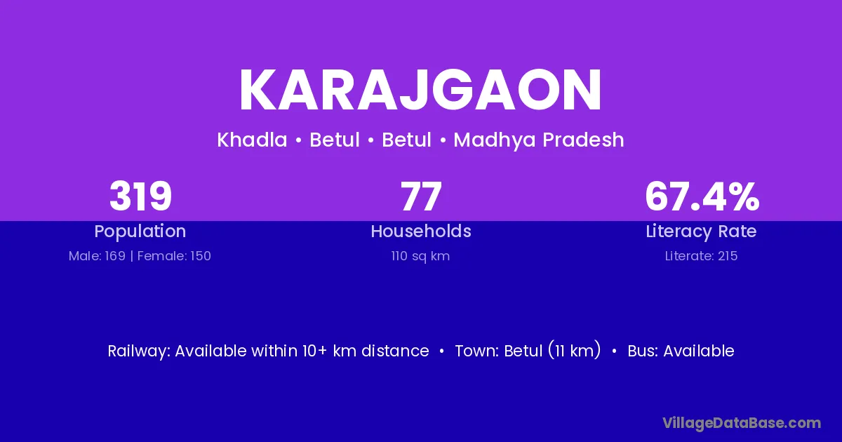 Karajgaon village has a total population of 3,672 people, of which 1,921 are males and 1,751 are females.