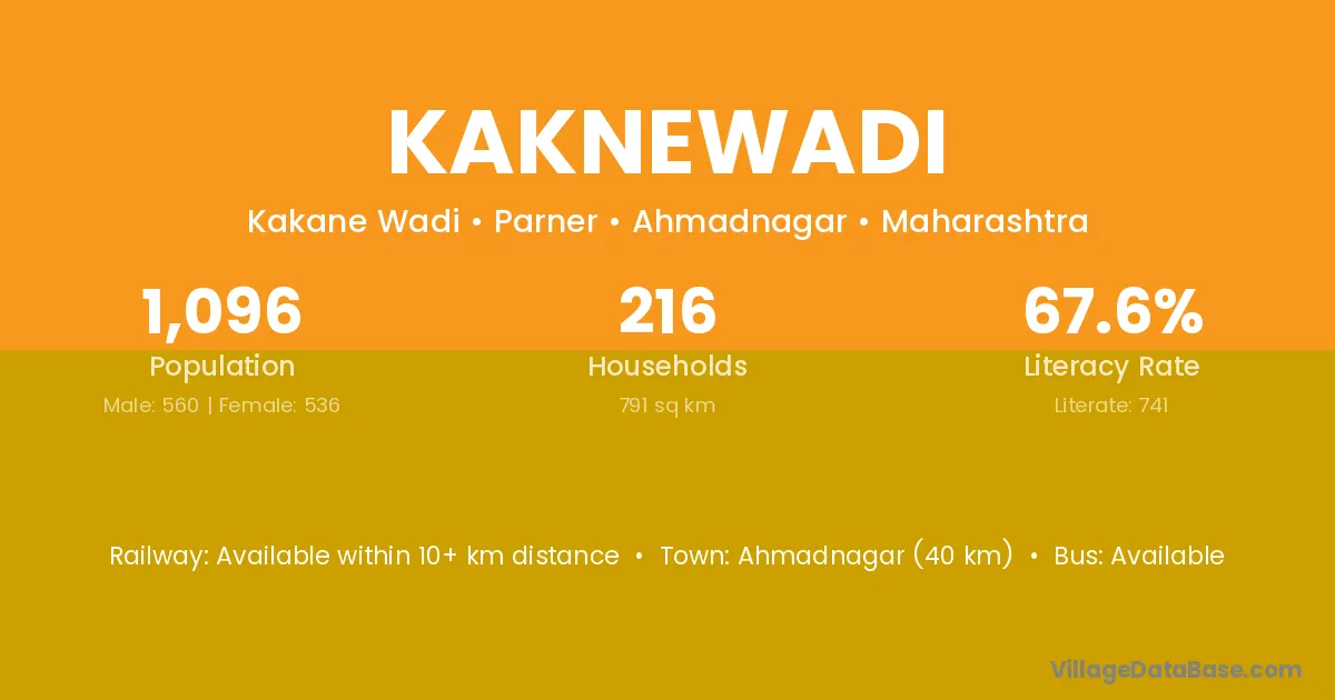 Ahmadnagar (40 km) is the nearest town to Kaknewadi village for major economic activities and is located approximately 40 km away.
