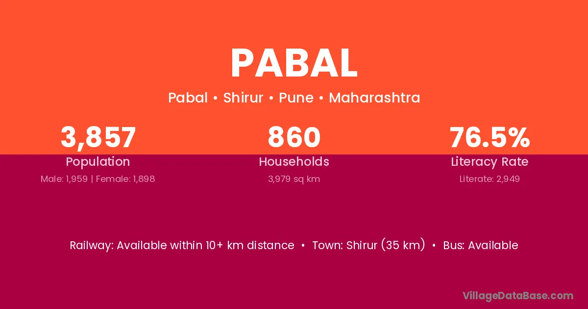 According to Census 2011 information, the village code of Pabal village is 414304.