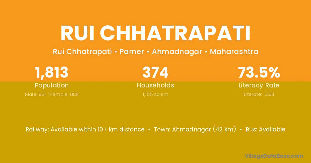 Ahmadnagar (42 km) is the nearest town to Rui Chhatrapati village for major economic activities and is located approximately 42 km away.