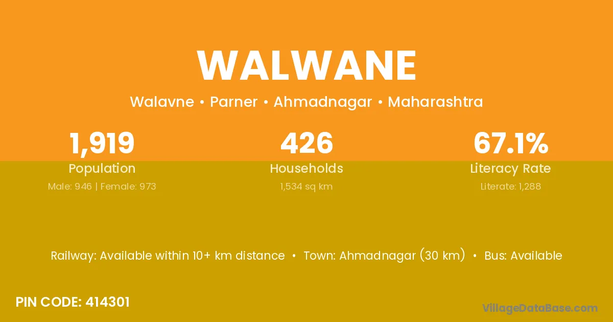 Ahmadnagar (30 km) is the nearest town to Walwane village for major economic activities and is located approximately 30 km away.