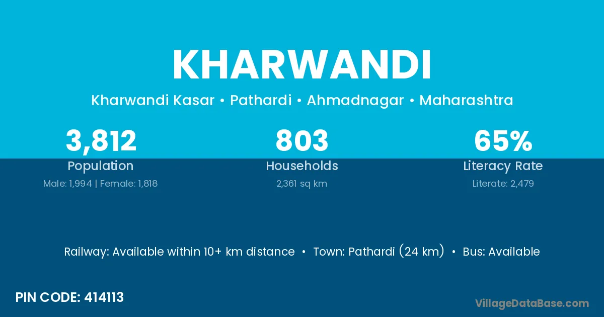 Pathardi (24 km) is the nearest town to Kharwandi village for major economic activities and is located approximately 24 km away.